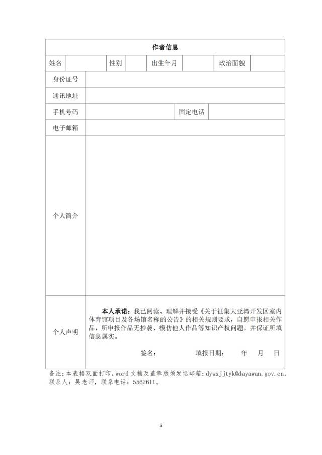 。ㄒ唬┩陡逭唔毺顚憽洞髞啚硡^(qū)室內(nèi)體育館項目及各功能場館名稱命名征集表》,提交電子文檔或紙質(zhì)文檔。
