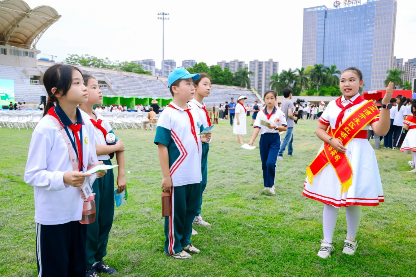 活動中還舉辦了惠州市第三屆紅領巾校外嘉年華。嘉年華以“紅領巾獎章”爭章形式開展,現(xiàn)場設置了活動留影區(qū)、知識問答區(qū)、社會實踐區(qū)等共14個活動集章攤位,少先隊員現(xiàn)場完成“紅領巾講解員”“綠美小衛(wèi)士”“科學探索”“自護安全”4個區(qū)域的紅領巾特色章打卡活動,即可獲得區(qū)級實體特色章4枚;現(xiàn)場集齊4枚特色章,即可獲得市級“惠州綠美實踐小先鋒”特色章一枚。