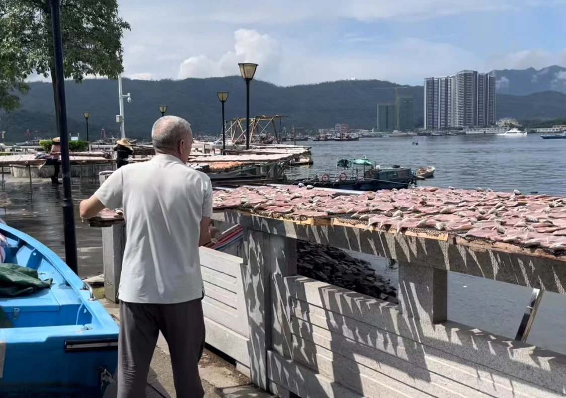 前進(jìn)村漁民正在晾曬漁獲。