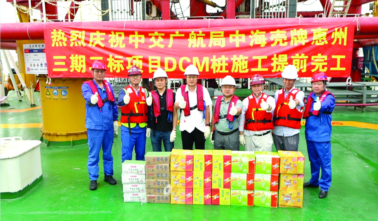 今年以來,中海殼牌三期配套工程項目多次超前完成關鍵節(jié)點:5月23日,二標段DCM樁全部完成,比原計劃提前2個月;6月30日,完成海堤2100米,比原計劃提前3個月;目前單日回填土石方量超過8.5萬方,比原計劃單日增加2.5萬方……不僅如此,聯(lián)合黨委積極統(tǒng)籌協(xié)調(diào)3個標段,通過增加設備、延長作業(yè)時間、增加取料場等方法,確保項目建設按計劃推進。