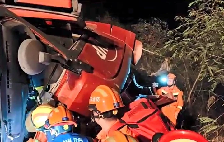 12月24日21時(shí)17分,大亞灣荃灣消防救援站接到一起警情:澳頭街道S30惠深沿海高速大亞灣出口有大貨車側(cè)翻,一人被困。荃灣消防救援站消防員立即前往處置,21時(shí)26分到達(dá)現(xiàn)場(chǎng)后,消防指戰(zhàn)員立即進(jìn)行偵查,發(fā)現(xiàn)一輛裝滿泥土半掛車側(cè)翻在高速出口轉(zhuǎn)彎處,車頭嚴(yán)重變形,一名司機(jī)被困在里面,司機(jī)精神狀態(tài)良好,無生命危險(xiǎn)。