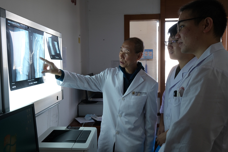 眼神清亮,行動(dòng)矯健,78歲的楊忠漢從醫(yī)已整整54年。作為中山大學(xué)附屬第一醫(yī)院骨科關(guān)節(jié)外科的一名主任醫(yī)師,楊忠漢至今仍活躍在醫(yī)學(xué)專(zhuān)業(yè)領(lǐng)域,看病、做手術(shù)、授課、做研究。2023年12月,楊忠漢帶領(lǐng)惠亞醫(yī)院骨科團(tuán)隊(duì)為73歲的外籍友人實(shí)施了右側(cè)全髖關(guān)節(jié)置換手術(shù),成功解決了困擾患者10余年的右髖部疼痛問(wèn)題!靶g(shù)后第二天就能下地鍛煉了,一周內(nèi)完全康復(fù)!痹撏饧讶速潎@不已。