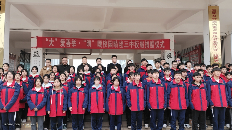 “穿上這件校服,我們仿佛感受到了來自大亞灣的溫暖陽光。”貴州省黔西南州晴隆縣第三中學(xué)高二(2)班學(xué)生張福艷飽含深情地說。日前,粵黔協(xié)作工作隊黔西南工作組晴隆小組向晴隆三中捐贈了2442套校服,全校2442名學(xué)生第一時間穿上了新裝。這批校服由大亞灣開發(fā)區(qū)慈善總會捐助愛心款向晴隆當?shù)仄髽I(yè)訂購。這筆40萬元的愛心款既助力企業(yè)發(fā)展,又讓莘莘學(xué)子穿上了新裝。