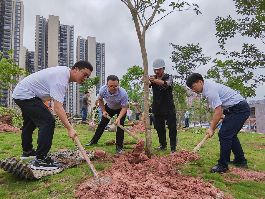 親手栽下綠樹(shù),守護(hù)綠水青山。山坡上,大家揮鍬鏟土、踏土夯苗,齊心協(xié)力種下30株胸徑達(dá)6厘米以上的紫花風(fēng)鈴木。一棵棵新栽的樹(shù)苗與公園山腳下之前已種的紫花風(fēng)鈴木融為一片,枝葉迎風(fēng)搖曳,生機(jī)勃勃,見(jiàn)證著大亞灣與晴隆兩地人民之間的深情厚誼。最后,大家還為每棵樹(shù)苗掛上專屬牌,牌子上標(biāo)注了樹(shù)苗的名稱、種植日期等。