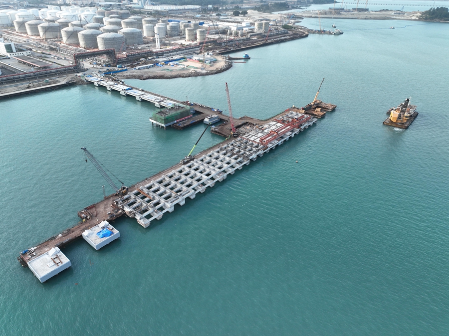 惠州港5萬噸級(jí)液化烴碼頭加緊建設(shè)。本版圖片由大亞灣區(qū)新聞中心提供