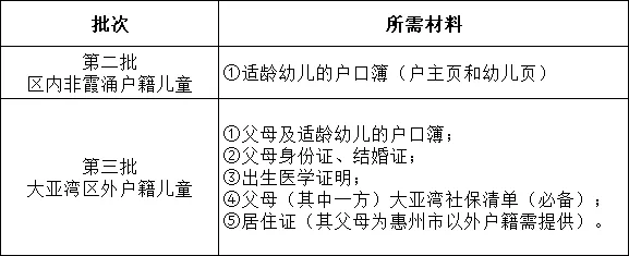 第二批:適齡兒童戶籍所在地在大亞灣區(qū)內(nèi)霞涌街道以外。