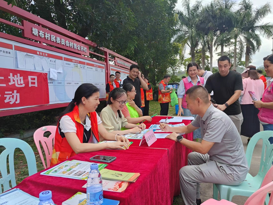 在西區(qū)塘布村委會廣場,政策宣傳區(qū)、政策咨詢臺前圍滿了熱情的村民。工作人員向村民宣傳自然資源有關(guān)政策,派發(fā)自然資源相關(guān)宣傳資料,并耐心解答群眾關(guān)心問題,進(jìn)一步提高村民自然資源保護(hù)意識,推動形成“主動保護(hù)自然資源”的良好氛圍。