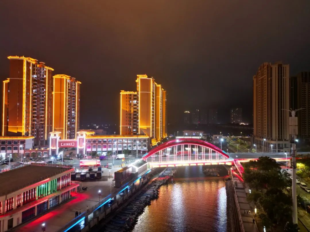 夜幕降臨,澳頭金門塘碼頭霓虹璀璨。