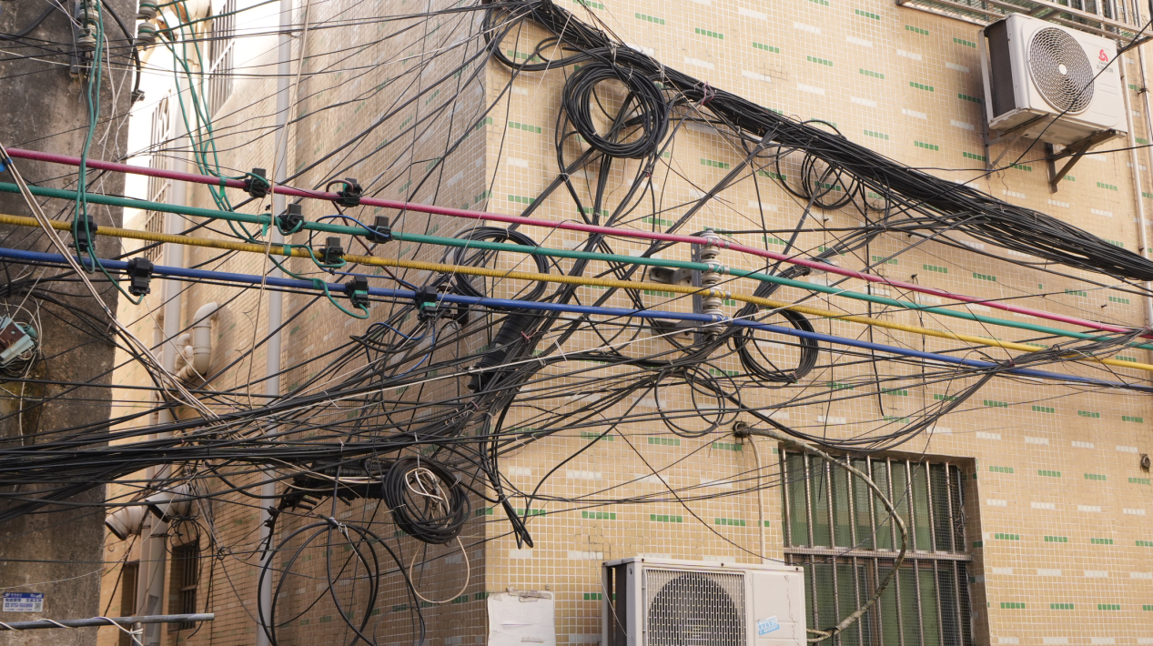 “不同的租客選擇不一樣的運營商,一旦更換運營商則要接入新的電線!毙洛即妩h總支書記黃振忠介紹,由于過去大家沒有對線路進行統(tǒng)一規(guī)劃和管理,只能被動地根據(jù)經(jīng)濟發(fā)展不斷接入新的線路。多年來,這一現(xiàn)象不斷加劇,進而出現(xiàn)了廢線未除而新線又接的局面!皝y接拉線路不僅影響市容市貌,而且強弱電纏繞搭掛還存在重大安全隱患!秉S振忠說。