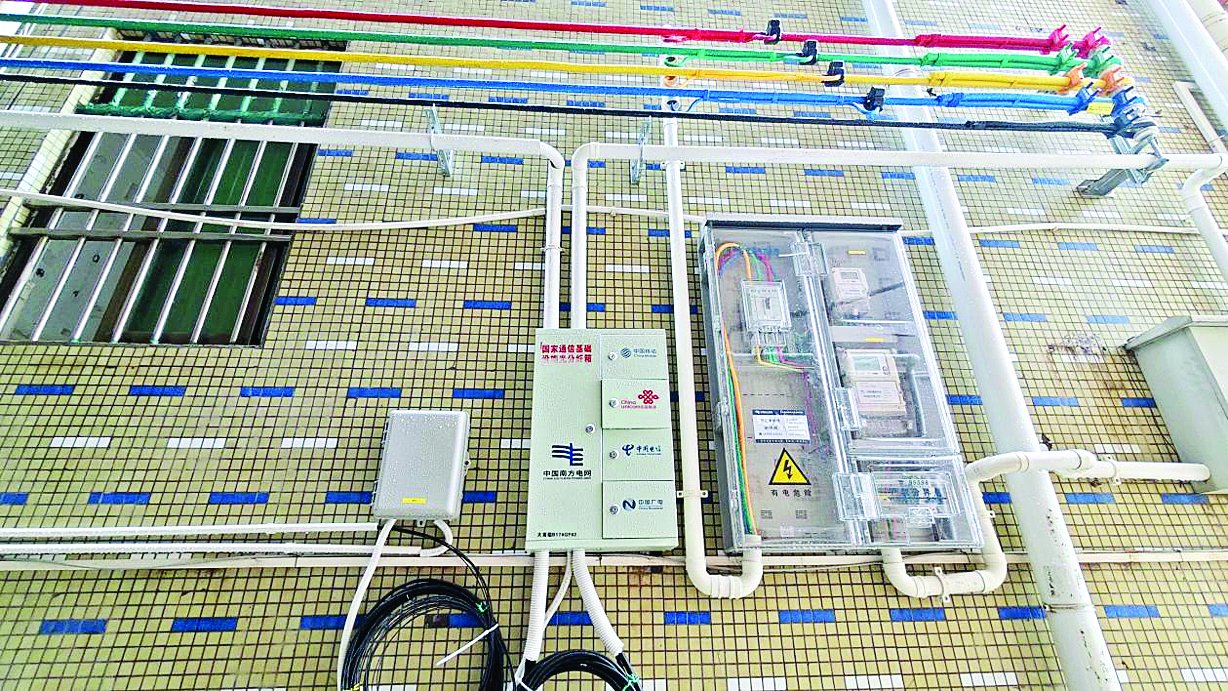 “根據(jù)我們和運營商的協(xié)商,我們最終決定樓棟路由線路由運營商負責(zé)改造!秉S振忠說,由四大運營商按比例分配光纖通道,實現(xiàn)移動、聯(lián)通、電信、廣電“四網(wǎng)融合”的模式創(chuàng)新。通過規(guī)范布線、精準(zhǔn)設(shè)箱、更換街碼、主線下地、次線掛墻、拆除廢棄線路等措施,共整治各類問題點位40余處,移除廢舊電線桿3條,清理光纜電線箱14個,有效清理“空中蜘蛛網(wǎng)”。