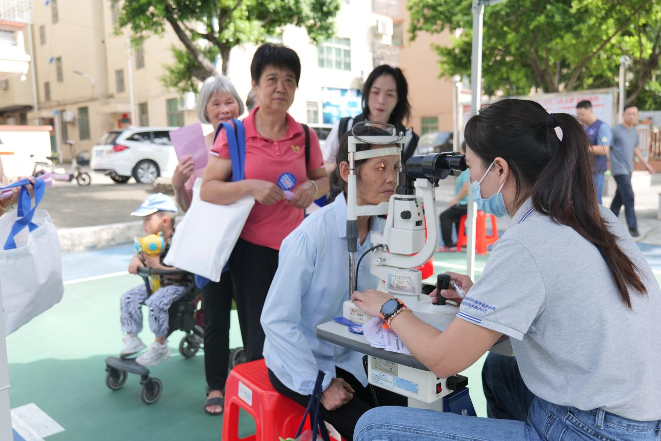 活動現(xiàn)場,工作人員為村民進(jìn)行眼部檢查。