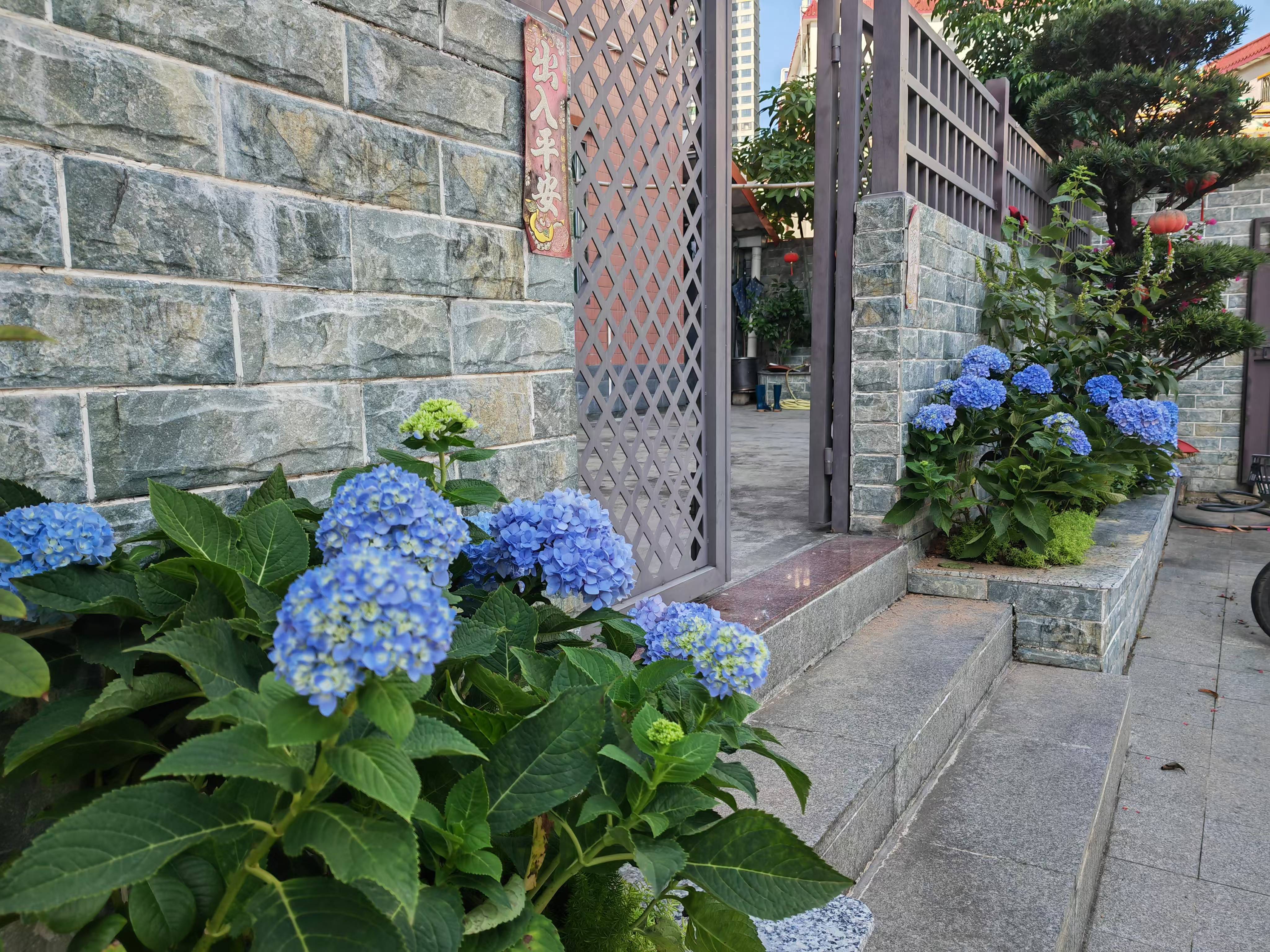 在衙前村生態(tài)塘一側(cè),梁女士家的庭院同樣吸引眼球:矮墻之下,一排藍(lán)色花盆整齊排列,盆內(nèi)紅色三角梅、紫色繡球花、綠色山茶花交相輝映,構(gòu)成了一幅五彩斑斕的畫卷。在此之前,這個(gè)庭院還只是一片空曠之地,未曾有過這般生機(jī)盎然之景。庭院的美麗蛻變讓梁女士一家滿心歡喜,梁女士一家主動(dòng)接通水管為花卉澆水,呵護(hù)這份美麗。