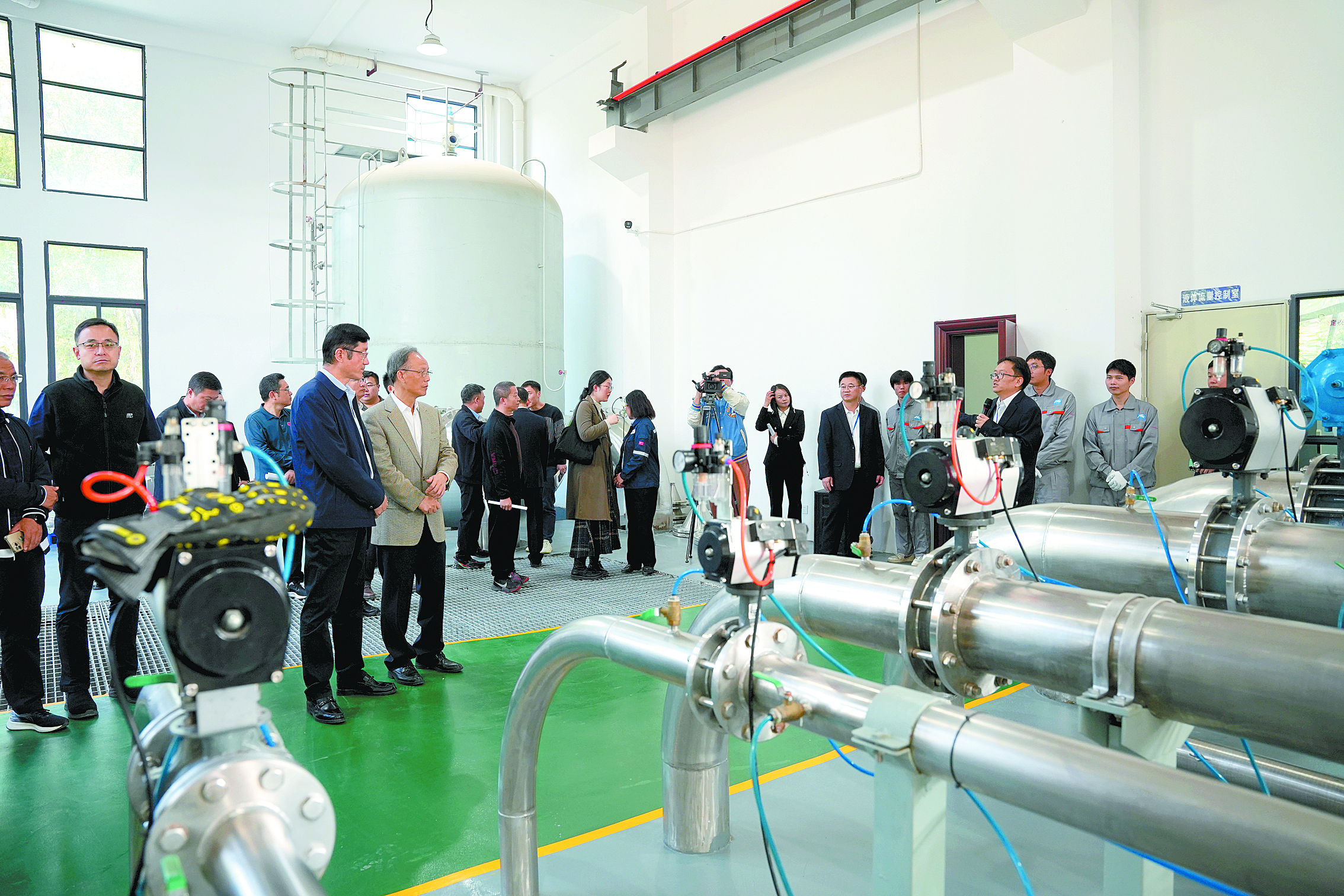 項(xiàng)目揭牌后參觀大亞灣石化檢測基地大樓。