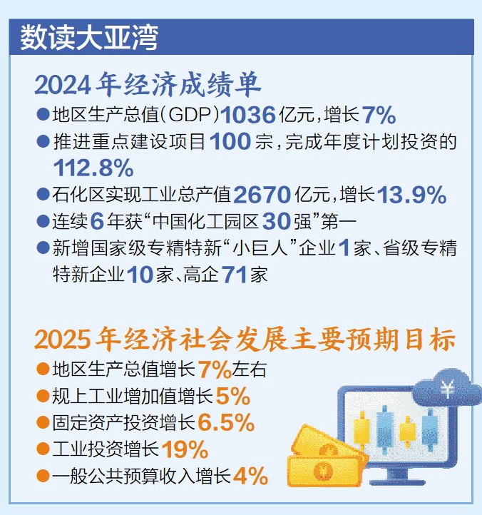 經(jīng)過(guò)30多年的發(fā)展,大亞灣2024年GDP首次超過(guò)千億元,規(guī)上工業(yè)總產(chǎn)值達(dá)3671億元,石化區(qū)發(fā)展空間拓展一倍,新興產(chǎn)業(yè)園全面發(fā)力,港口蓄勢(shì)待發(fā)。會(huì)議提出,2025年經(jīng)濟(jì)增長(zhǎng)預(yù)期目標(biāo)7%左右。