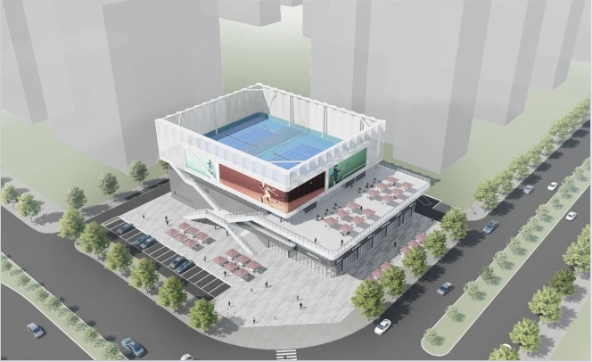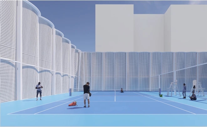 屋頂網(wǎng)球場(chǎng)透視圖。