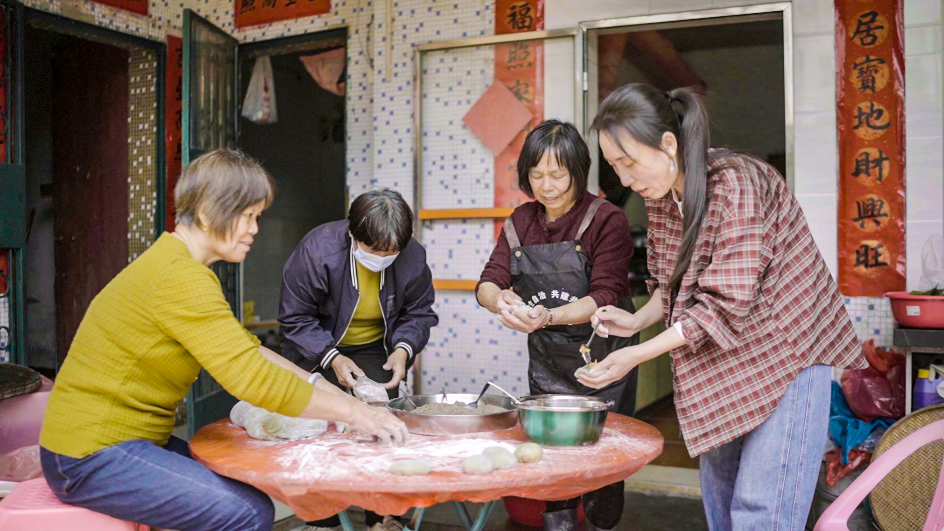 64歲的葉友蘭是一名家庭主婦,熱心公益,是塘尾村“最美村嫂”。她從事艾粄制作近40年,制作的艾粄在西區(qū)遠近聞名。從摘艾葉、洗凈、搗碎,到和糯米粉攪拌,再到包裹餡料、蒸熟,每一道工序葉友蘭都親力親為,從不馬虎。她巧手一捏,就是客家人世代傳承的煙火故事。