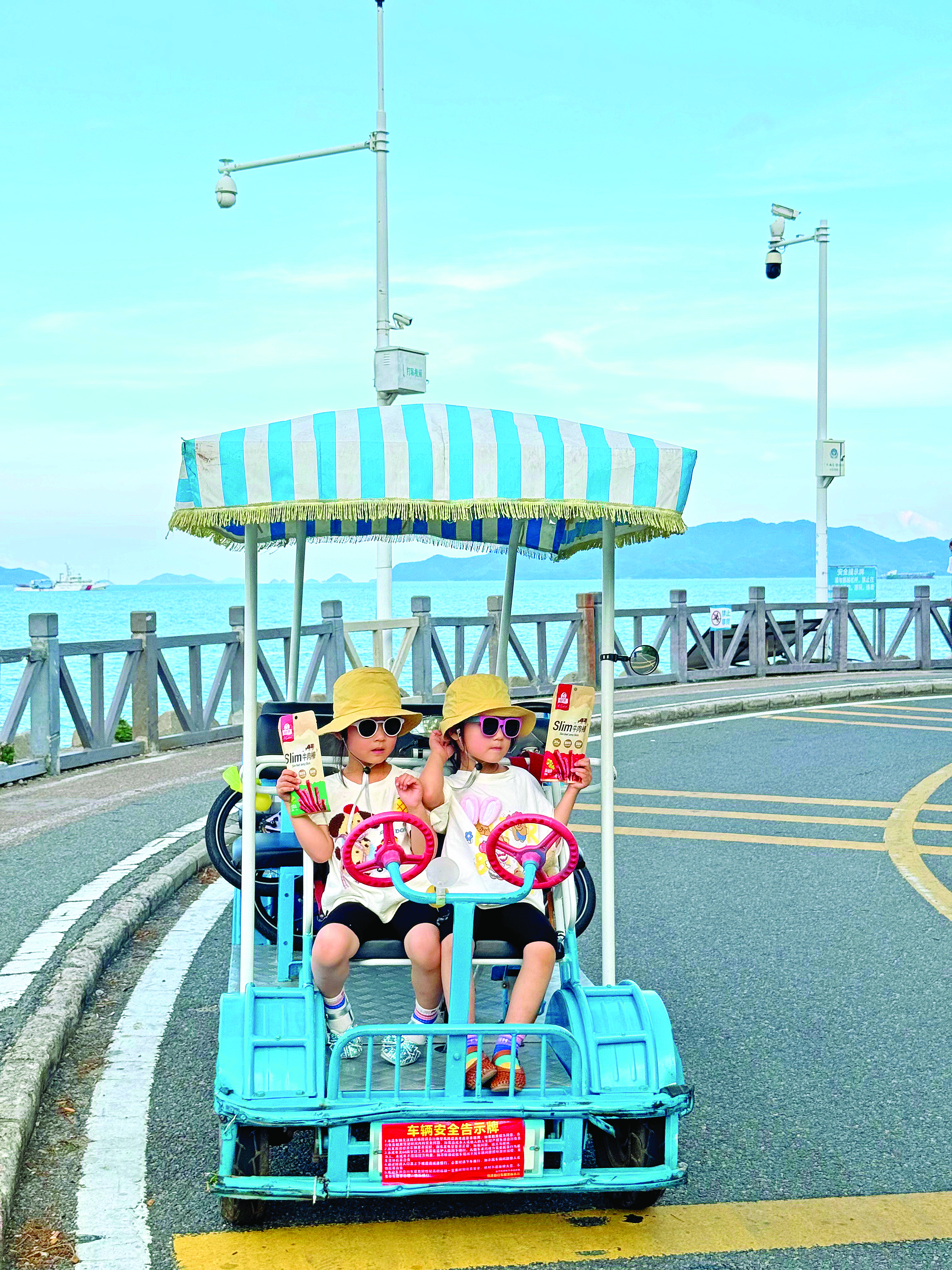 小宅的一對(duì)雙胞胎女兒在大亞灣衙前村游玩。圖片由受訪者提供