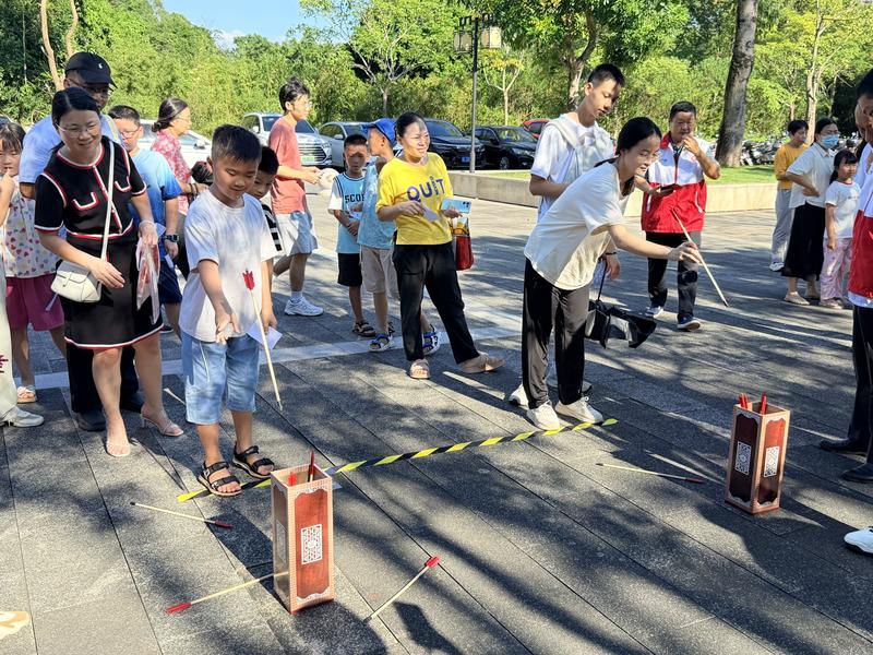 緊接著,互動(dòng)體驗(yàn)區(qū)將活動(dòng)推向高潮。居民們?cè)谥驹刚咧笇?dǎo)下,親手制作花燈、剪刻窗花、包制月餅,在動(dòng)手實(shí)踐中感受非遺魅力和中秋韻味。另一邊的趣動(dòng)全運(yùn)區(qū),投壺競(jìng)技、跳繩大闖關(guān)、呼啦圈擂臺(tái)賽等傳統(tǒng)與現(xiàn)代結(jié)合的運(yùn)動(dòng)項(xiàng)目,讓參與者在挑戰(zhàn)中鍛煉身體,傳遞著全民健身的健康理念。此外,現(xiàn)場(chǎng)還設(shè)置了文明知識(shí)有獎(jiǎng)問答,寓教于樂,宣傳普及《惠州市文明行為促進(jìn)條例》,提升居民的文明素養(yǎng)。