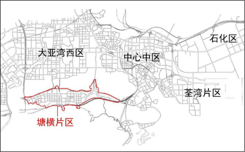 從地圖上看,位于大亞灣新興產(chǎn)業(yè)園南部的塘橫片區(qū)外形酷似一條威武的鯊魚。其規(guī)劃總用地面積約9.58平方公里,北至龍海五路,南側(cè)以深汕第二高速為界,西臨深圳坪山區(qū),東至猴仔灣片區(qū),其中規(guī)劃建設(shè)用地7.53平方公里。