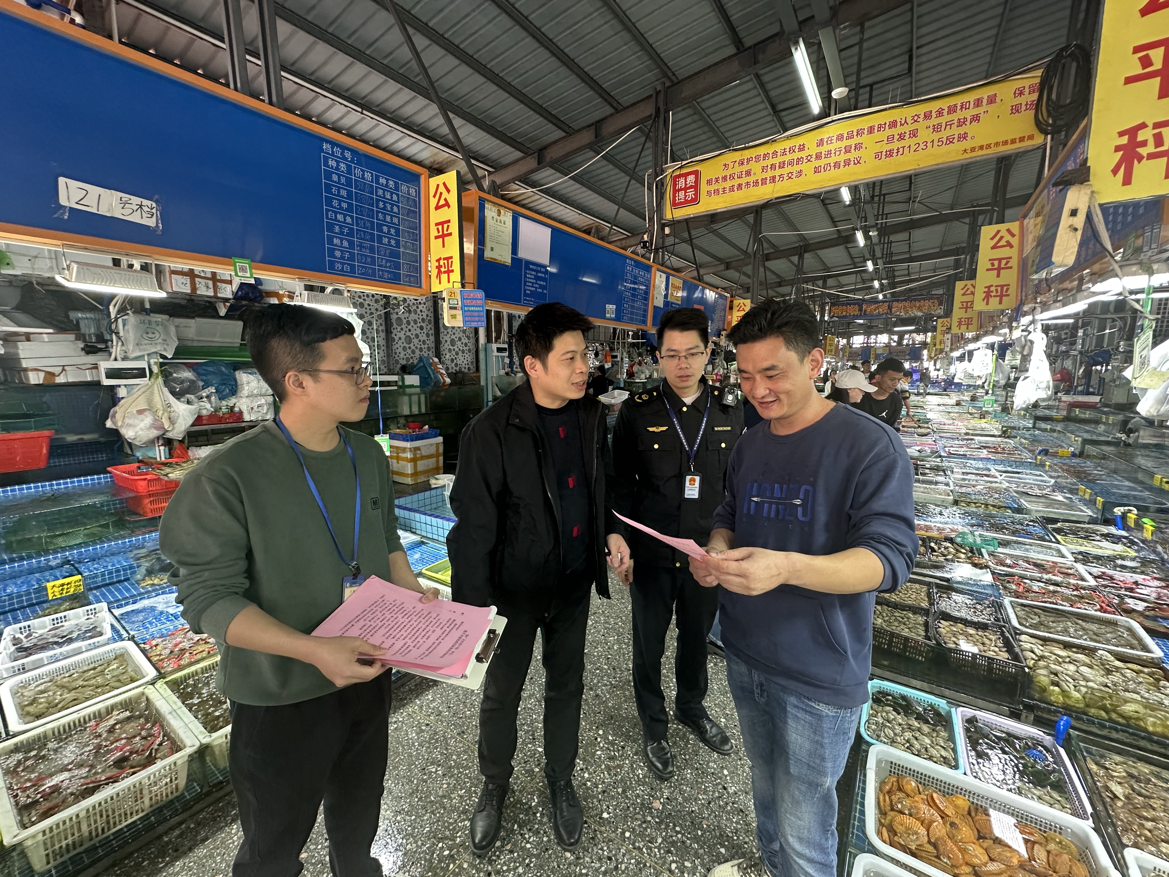 執(zhí)法人員檢查海鮮市場;葜萑請(bào)記者匡湘鄂 攝