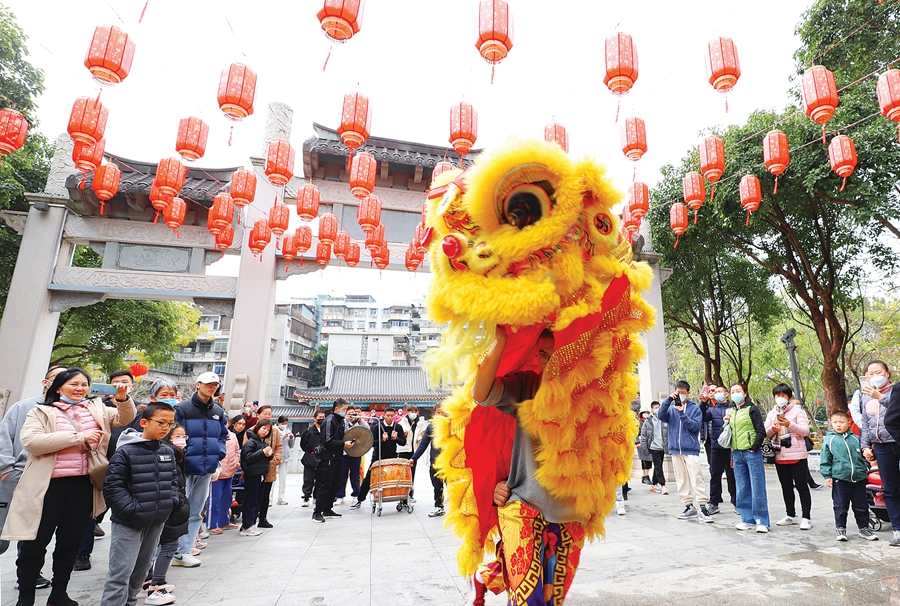 春節(jié)系列文化活動醒獅表演吸引眾多市民圍觀;葜萑請笥浾哏姇承 攝