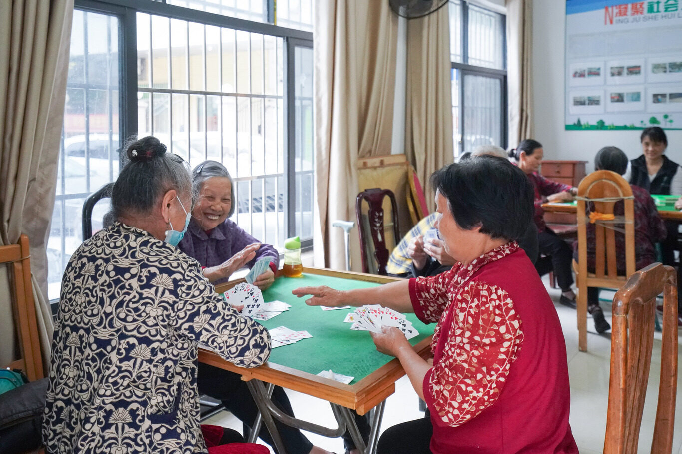 改造后的群芳苑,老人們在老人活動中心打牌消遣。