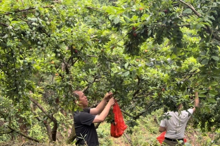 參加李子節(jié)活動(dòng)的游客在大興李子園采摘李子。