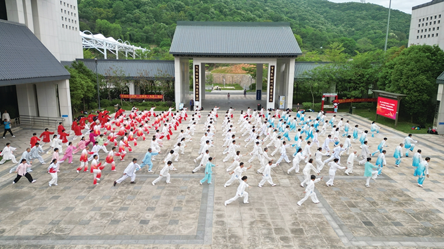 150名太極拳學員展示培訓成果。 惠州日報記者鄧惠婷 通訊員馮雪輝 攝
