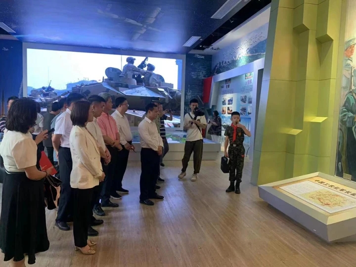 揭牌儀式后,在小小紅色講解員的引導(dǎo)下,與會人員來到新建成的全民國防教育展覽廳參觀。一段段記載崢嶸歲月的歷史事件以圖文并茂的形式,將大家?guī)霘v史隧道,感受硝煙彌漫的戰(zhàn)爭歲月,體會偉大革命精神。