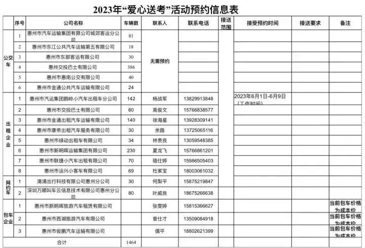一年一度的高考即將來臨,為了讓廣大考生能夠安全、快捷、準時抵達考場,以良好的心理素質和沉著冷靜的狀態(tài)應對考試!惠州市交通運輸局惠城區(qū)分局同惠城區(qū)各交通運輸企業(yè)共同舉辦2023年“愛心送考”公益活動,全區(qū)近1500輛公交車、出租車(含網約車)將全力為考生保駕護航!