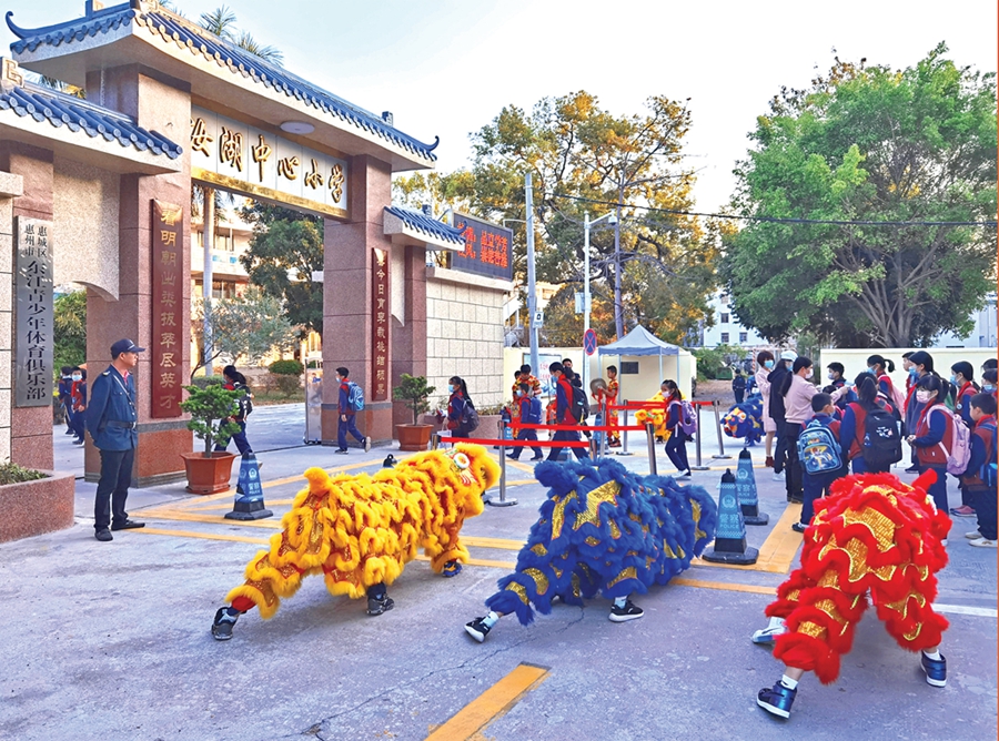 據(jù)介紹,該校抓住培養(yǎng)學(xué)生良好品格習(xí)慣的關(guān)鍵階段,通過開發(fā)武術(shù)和醒獅中蘊(yùn)含的思想理念和愛國情操,將之融入育人過程當(dāng)中,為小學(xué)生身心健康成長發(fā)揮積極作用。該校提出“傳承武術(shù)醒獅文化、弘揚(yáng)中華強(qiáng)者精神”的思路和口號,在全校普及詠春拳和醒獅教學(xué)。學(xué)校還自編并推廣詠春拳大課間操,成立了武術(shù)社團(tuán)和醒獅社團(tuán),在師生中掀起練習(xí)熱潮的同時(shí),切實(shí)提升武術(shù)醒獅文化與教育教學(xué)的融合度,開展讀武德三字經(jīng)、講武術(shù)名人故事、學(xué)武術(shù)文化知識、習(xí)家鄉(xiāng)武術(shù)、做武術(shù)大課間操、唱愛國歌曲等系列活動(dòng),學(xué)生在特色活動(dòng)中通過學(xué)習(xí)武術(shù)和醒獅,不僅達(dá)到了強(qiáng)身健體的作用,也逐步形成了吃苦耐勞、堅(jiān)忍不拔、奮發(fā)向上、愛國愛家的優(yōu)秀品質(zhì)。
