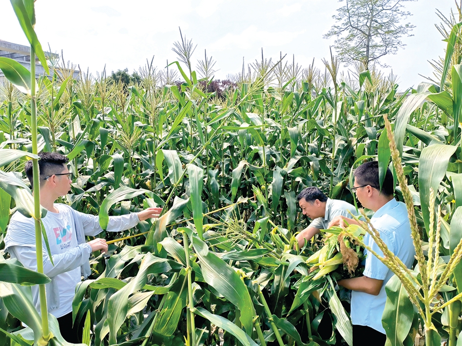 試驗(yàn)田里的甜玉米植株健壯、長(zhǎng)勢(shì)良好。