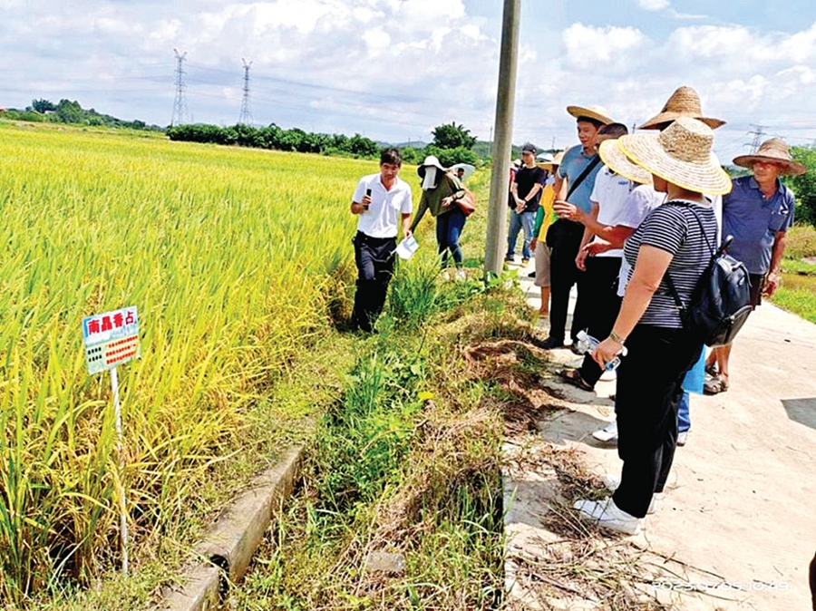 當看到品質優(yōu)、抗性好、產量高的水稻品種——南晶香占,種植大戶簡秀英像挖到了寶,馬上向農技人員索要品種名稱,表示自己有十幾畝地,下半年將大面積種植這個優(yōu)良品種。