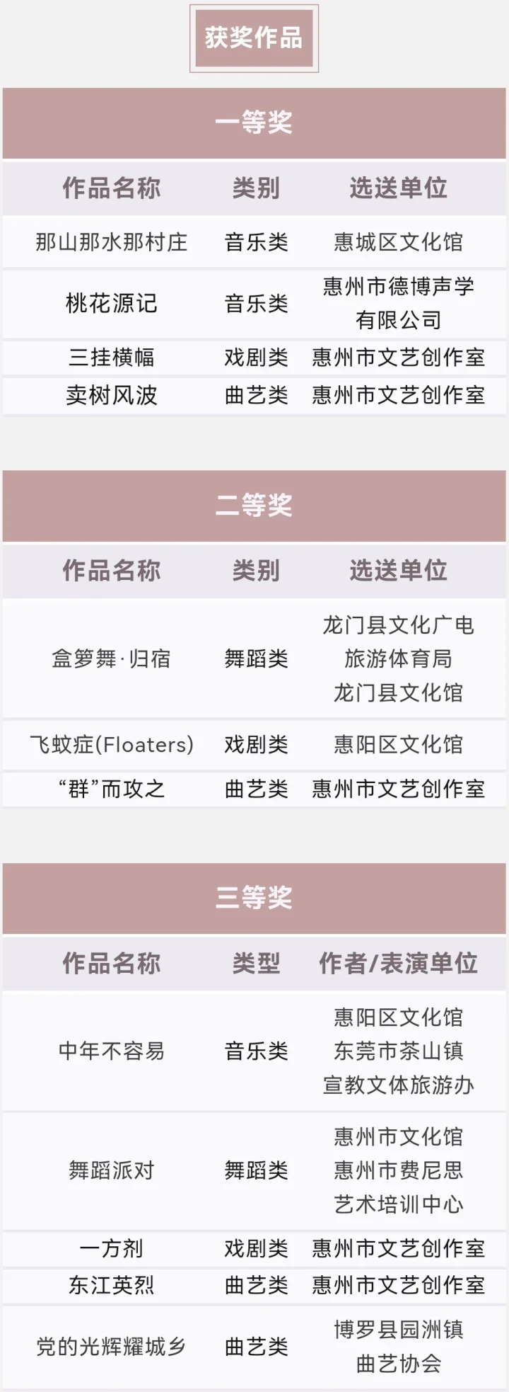 惠州原創(chuàng)歌曲獲獎(jiǎng)一覽表。