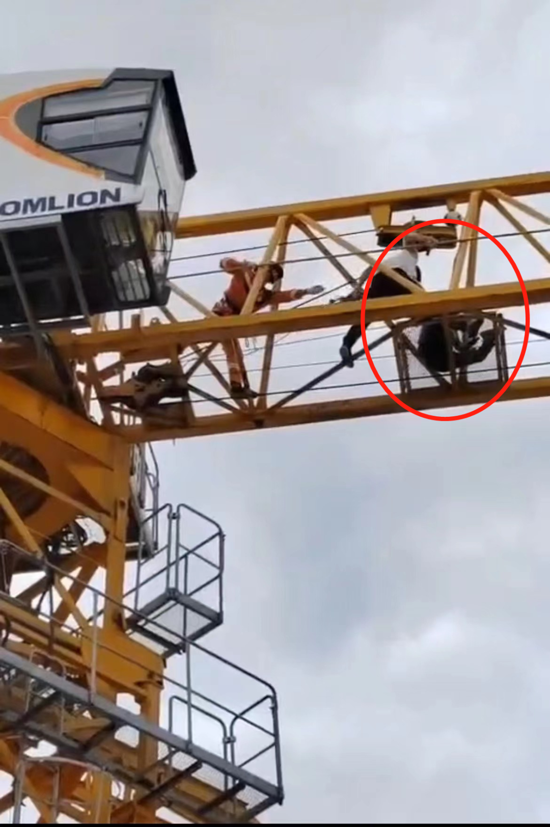 救援人員發(fā)現(xiàn)該名男子在吊塔高約120米處的大臂上,沒有任何保護措施。經(jīng)了解,該男子由于未拿到工錢,一氣之下鋌而走險。
