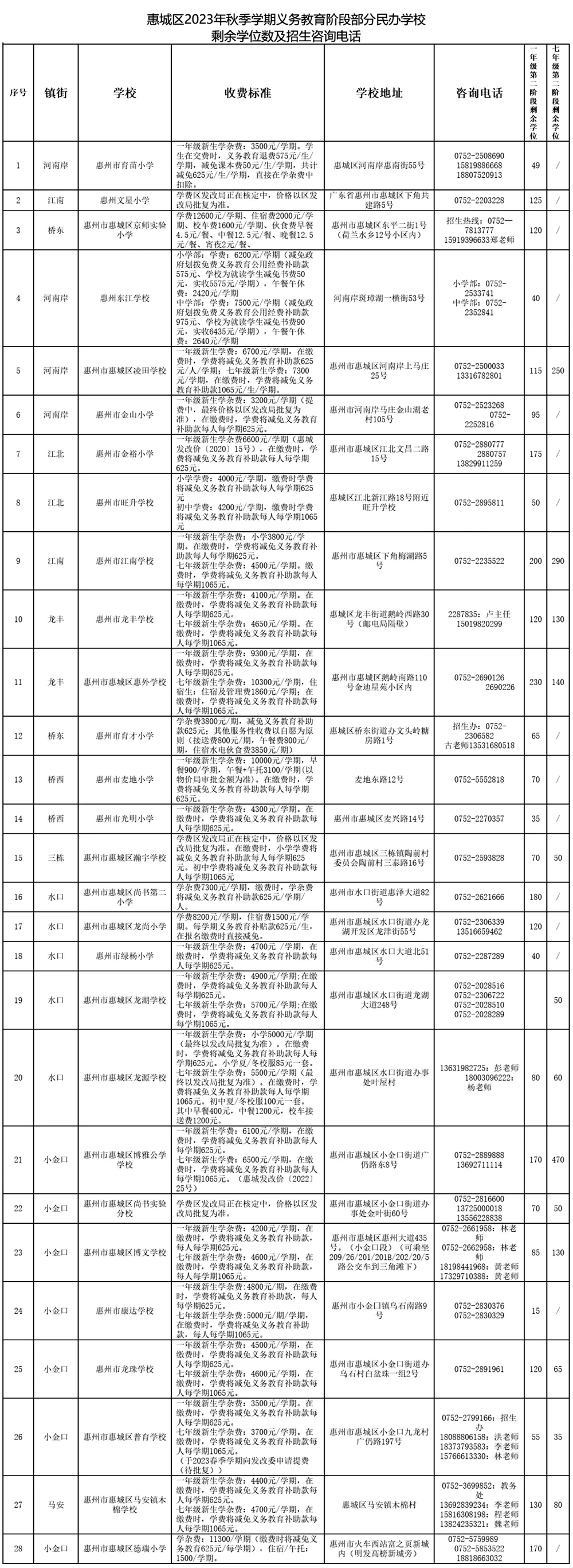 《惠城區(qū)2023年秋季學(xué)期部分民辦學(xué)校起始年級(jí)第二階段招生公告》,