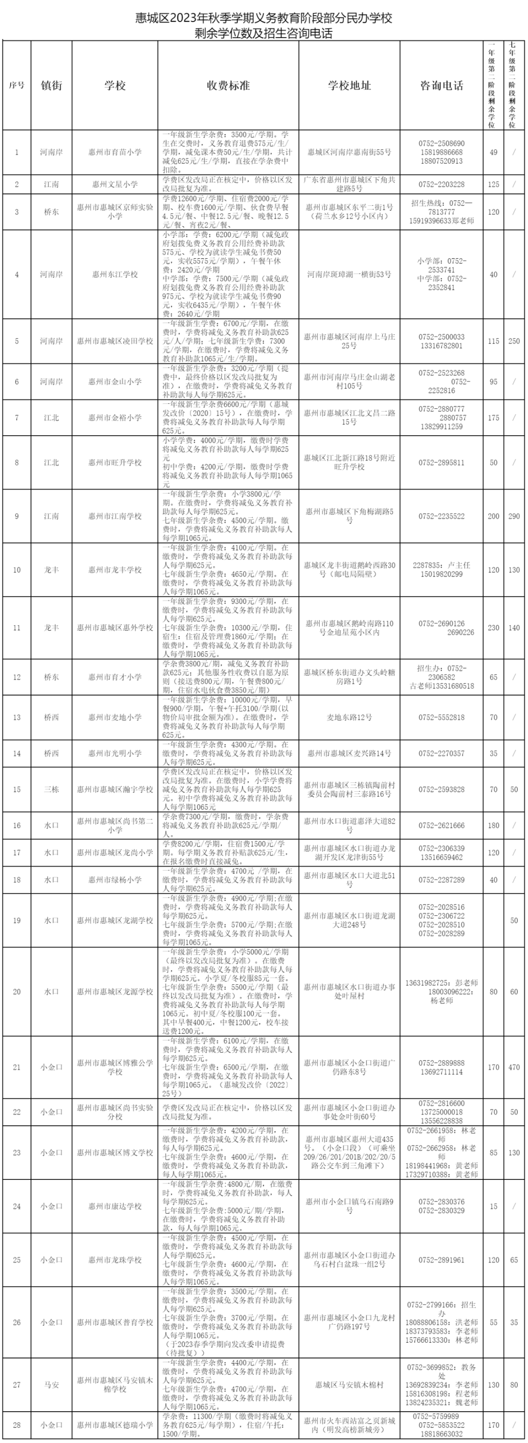 根據(jù)省、市教育行政主管部門2023年招生工作相關(guān)文件精神,充分利用好民辦學(xué)校剩余學(xué)位,現(xiàn)將惠城區(qū)部分民辦學(xué)校起始年級(jí)第二階段招生工作說(shuō)明如下: