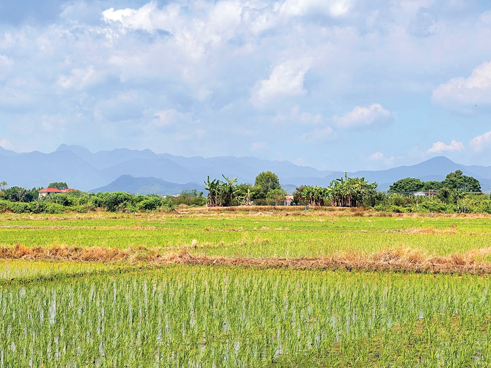 蘆洲鎮(zhèn)三洲村剛插下的秧苗;葜萑請(bào)記者彭紅霞 特約通訊員廖詠琳 攝