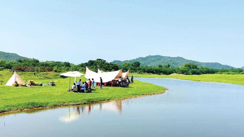 蘆洲旅游資源豐富,東江邊的草灘吸引市民搭帳篷游玩。