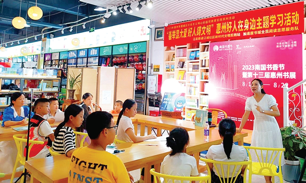 八月惠城,滿(mǎn)城書(shū)香,一年一度的南國(guó)書(shū)香節(jié)如期而至。為營(yíng)造愛(ài)讀書(shū)、讀好書(shū)、善讀書(shū)的良好社會(huì)氛圍,8月18日至8月22日,2023年南國(guó)書(shū)香節(jié)惠城分會(huì)場(chǎng)陸續(xù)開(kāi)展讀書(shū)分享會(huì)、親子主題講座、少兒畫(huà)展等多場(chǎng)文化體驗(yàn)活動(dòng),與熱愛(ài)閱讀的市民共赴書(shū)香之旅。