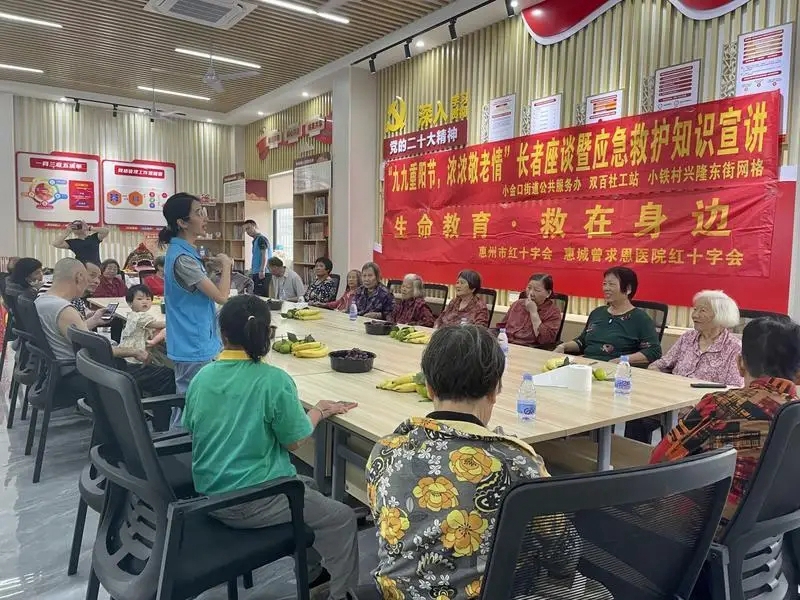 為進一步弘揚中華民族敬老、愛老、助老的傳統(tǒng)美德,讓社區(qū)老人度過一個歡樂、祥和、健康、文明的老年節(jié),10月20日上午,惠城區(qū)小金口街道社會工作服務站聯合小鐵村興隆東街網格黨群服務站、惠城曾求恩醫(yī)院紅十字會志愿服務隊,開展“九九重陽節(jié),濃濃敬老情”長者座談暨應急救護知識宣講活動。