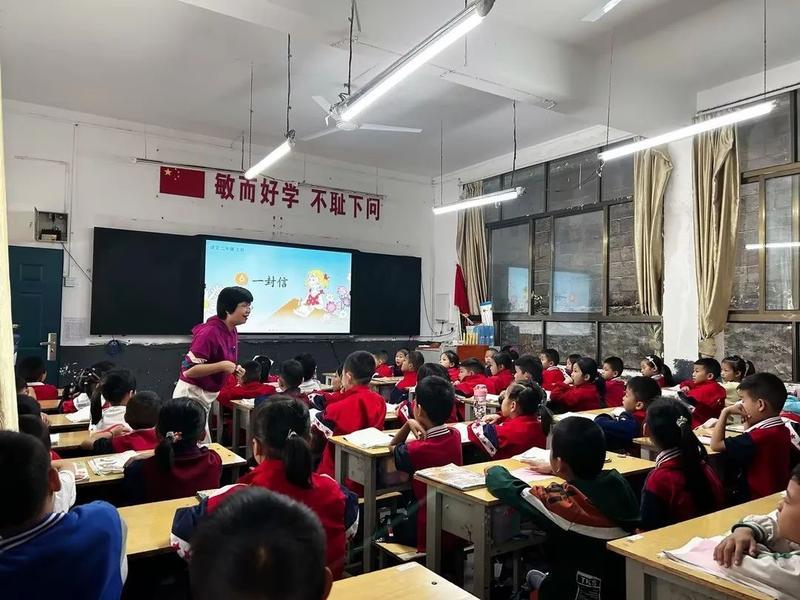 惠州市第十一小學方直分校袁群老師為冊亨縣紅旗小學學生上語文閱讀課。