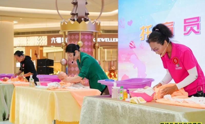 托育護理員比拼“為嬰幼兒洗澡”技能。 惠州日報記者葉文青 通訊員蔡雯潔 攝