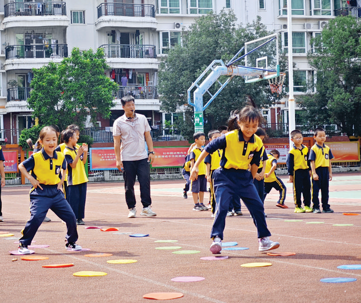 惠州市第十小學開展體育示范課,學生學中玩,玩中樂。