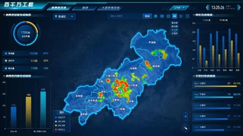 “塊數(shù)據(jù)+AI服務(wù)”賦能鄉(xiāng)村治理。基于“塊數(shù)據(jù)”建設(shè)惠城區(qū)百千萬工程鄉(xiāng)村振興建設(shè)應(yīng)用,以行政村為管理單元,對行政村內(nèi)的實有人口、樓棟、房屋建立可視化信息監(jiān)測,對鄉(xiāng)村振興赤膊房等專項建設(shè)情況實現(xiàn)一圖呈現(xiàn)、完工情況、完工效果一圖全覽。對問題房屋,結(jié)合鄉(xiāng)村全景及視頻監(jiān)控,進行圖上指揮調(diào)度,為鄉(xiāng)村振興建設(shè)賦能。