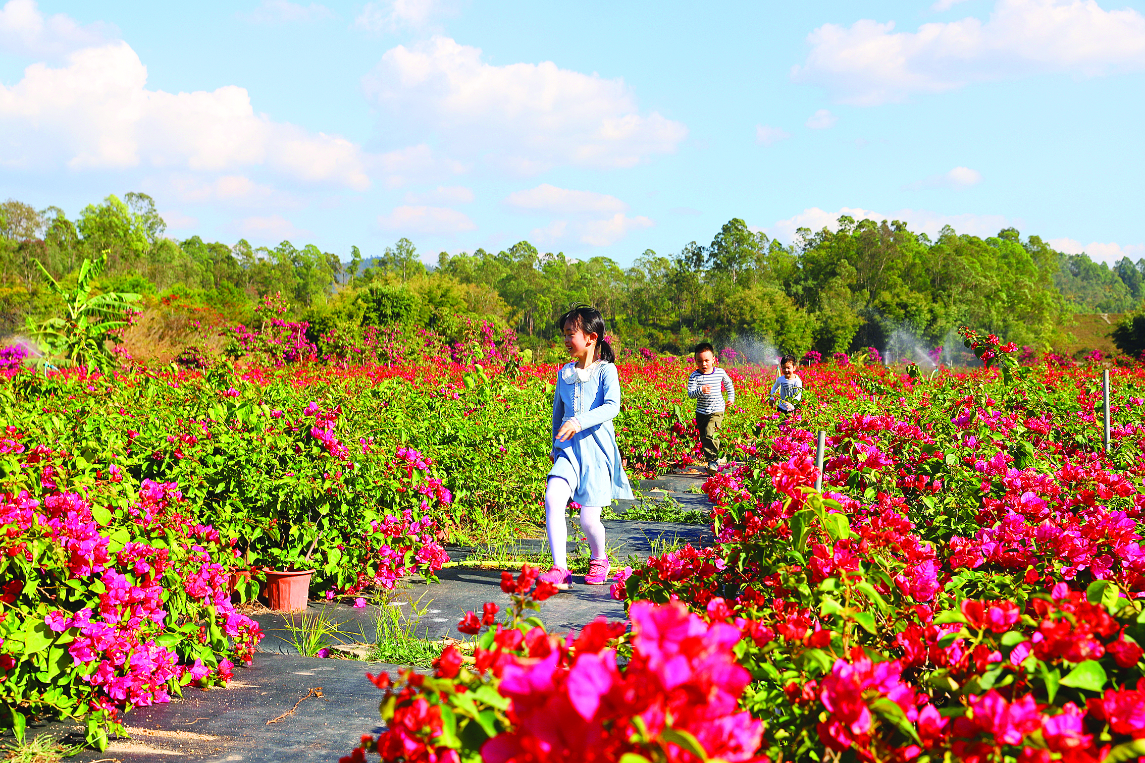 “簕杜鵑的花期比較長(zhǎng),只要有太陽(yáng)光的照射,花朵便會(huì)越發(fā)艷麗,整年時(shí)間,游客都可以欣賞到簕杜鵑的花開(kāi)盛景!睆垈バ壅f(shuō),助力鄉(xiāng)村振興不是一句空話,種田、開(kāi)農(nóng)場(chǎng)都必須要有技術(shù)支撐。這些年,他向著有花有果,花果結(jié)合,建設(shè)花園式田園農(nóng)場(chǎng)的目標(biāo)一直在努力。張偉雄通過(guò)進(jìn)高校、訪名師“取經(jīng)”等,漸漸把自己鍛煉成園藝工匠和種植能手。