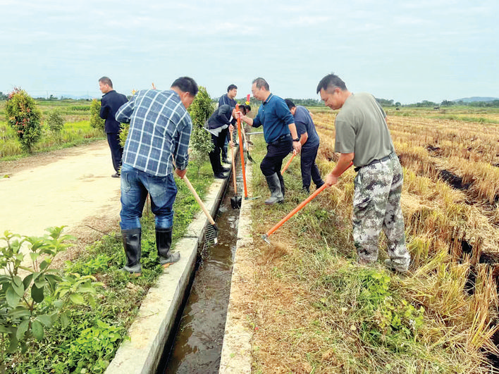 齊心協(xié)力清理疏通灌渠。 惠州日?qǐng)?bào)記者謝菁菁 特約通訊員匡贇 攝
