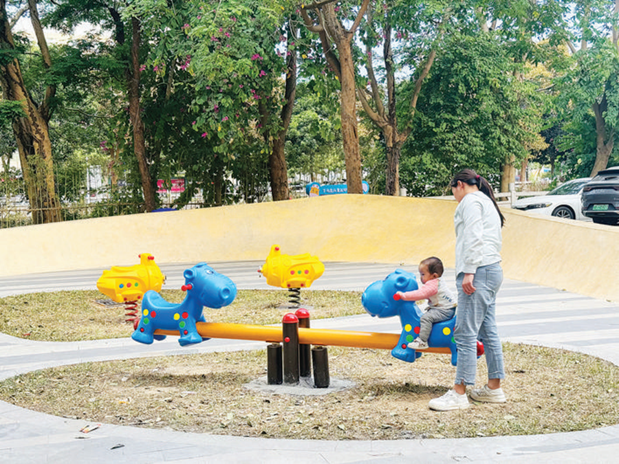 河南岸馬莊村兒童友好公園位于金山河畔,之前雜草叢生、蚊蟲滋生、落葉堆積。借著馬莊村精品村改造建設(shè)的契機,該公園于2022年12月動工建設(shè),如今這里干凈整潔,還有兒童滑梯、秋千、蹺蹺板等游樂設(shè)施,成為小朋友們休閑娛樂的好去處。