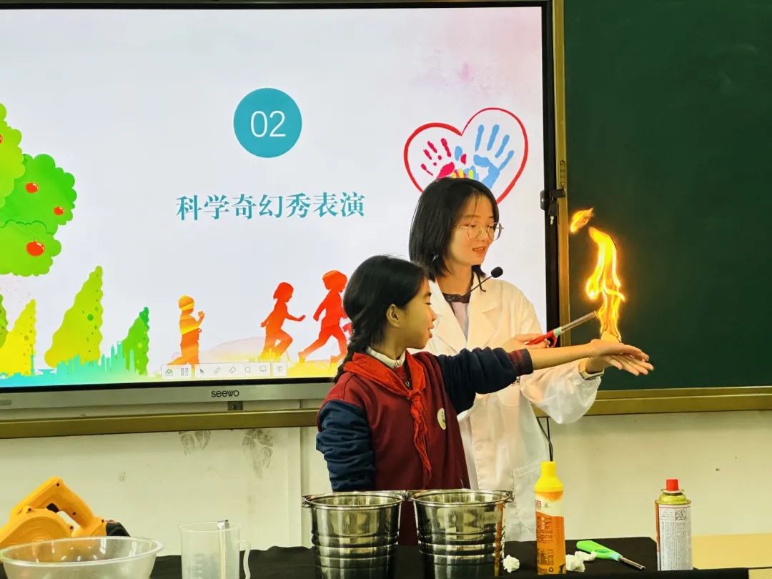惠州日?qǐng)?bào)訊 (記者葉文青 通訊員李嘉瑋)“超威空氣炮”“神奇火焰掌”“干冰下雪”……小朋友們對(duì)這些神奇的科學(xué)奇幻秀表演饒有興趣。為幫助和服務(wù)惠城區(qū)農(nóng)村留守少年兒童、異地務(wù)工人員子女健康成長(zhǎng),近日,共青團(tuán)惠城區(qū)委員會(huì)、少先隊(duì)惠城區(qū)工作委員會(huì),在惠城區(qū)5個(gè)農(nóng)村留守少年兒童和異地務(wù)工人員子女集中的“希望家園”陣地,開(kāi)展“情暖童心-愛(ài)心匯聚小鳥(niǎo)巢”活動(dòng),為孩子們帶去生動(dòng)有趣的活動(dòng)、送上新春科普禮包。