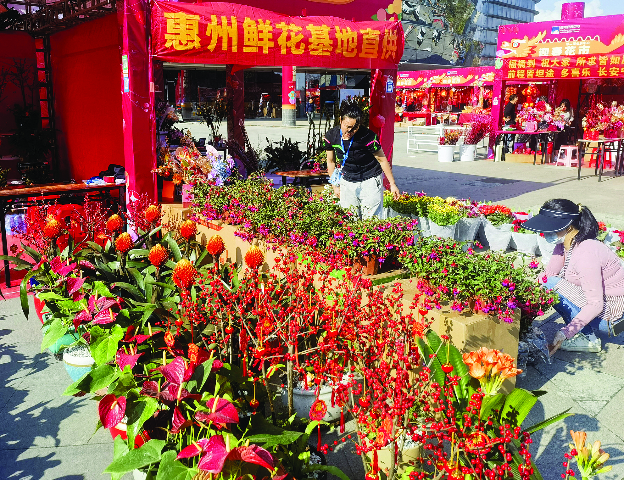 市民在江北花市上選購(gòu)年花。惠州日?qǐng)?bào)記者彭紅霞 特約通訊員黃仲君 攝